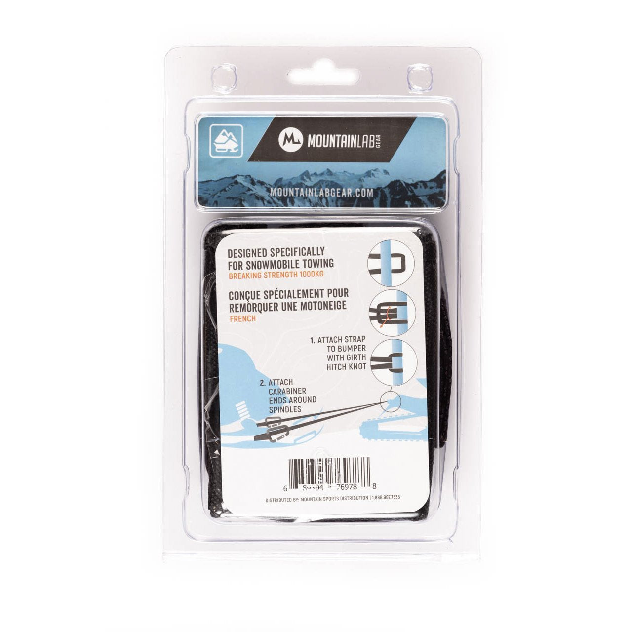 The Mountain Lab Snowmobile Tow Strap system works well in tricky terrain and allows the rider of the broken snowmobile to continue to maintain control. The rider of the broken snowmobiler should stay on their sled to brake when necessary. Only use at low speeds, to avoid injury. The kit comes with a bag and all necessary instructions.