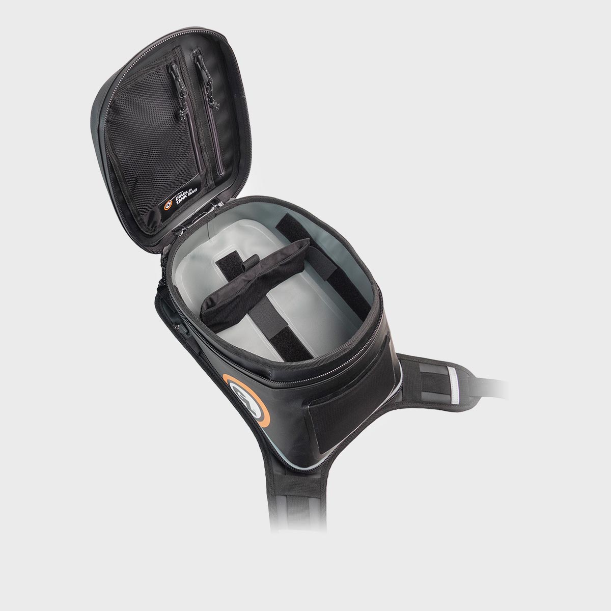 Photographers love the Diablo tank bag because of the interior’s hook-and-loop material that is compatible with many camera bag dividers, and for ease of access to the bag while seated on the motorcycle.