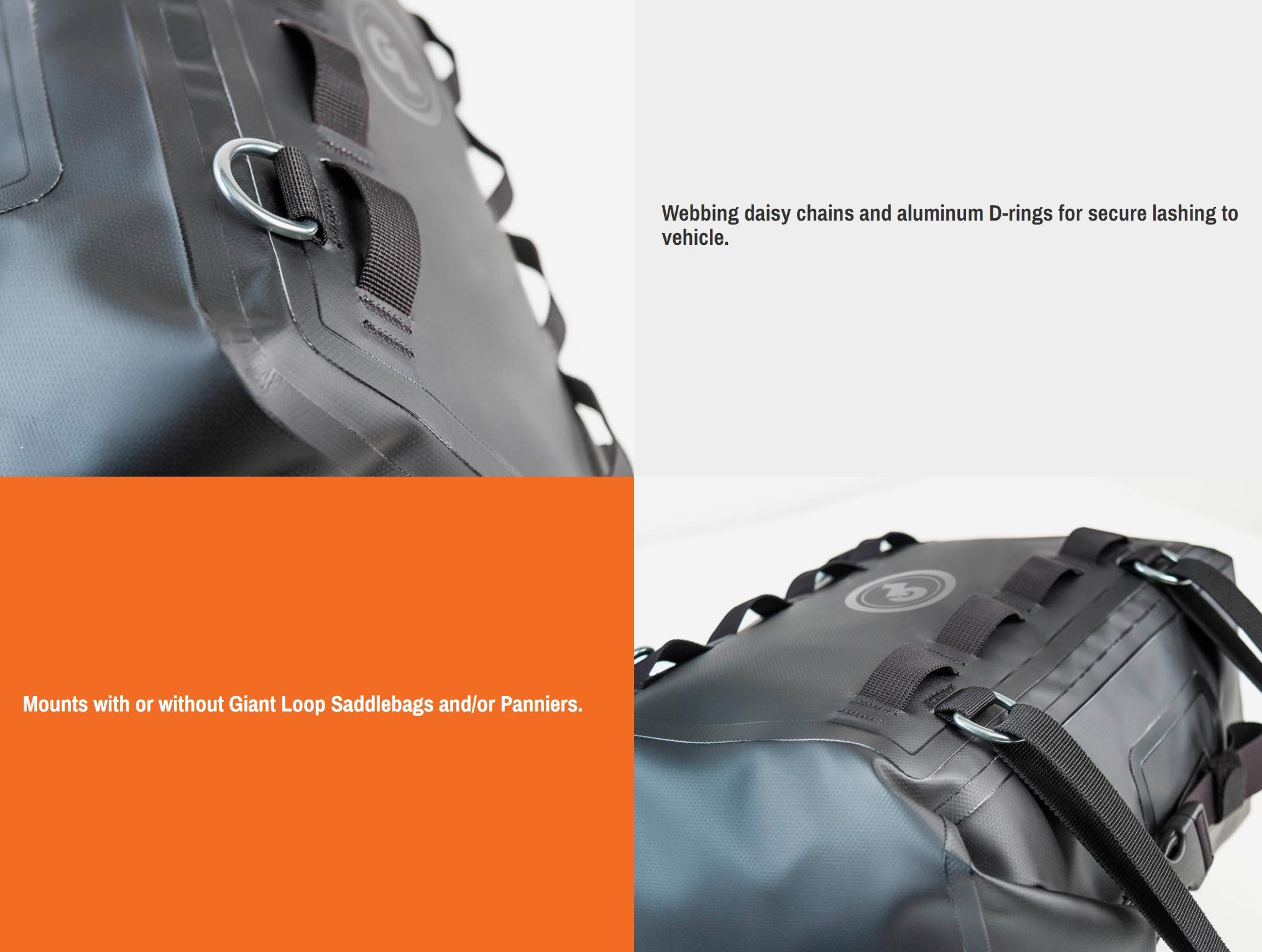 - Mounts with or without Giant Loop Saddlebags and/or Panniers.
