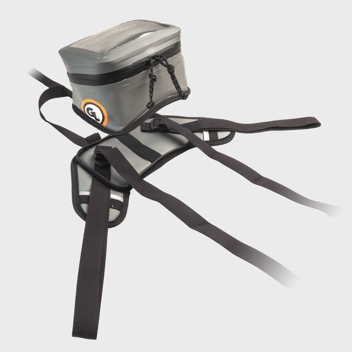 The slim, trim minimalist Buckin’ Roll Tank Bag has been completely redesigned for 2020, featuring 1.5 liters of packable volume, RF-welded waterproof construction, electronics pass-through, clear vinyl phone pocket — and designed to stay completely out of the way, with no buckles in knees or crotch, even when riding the most technical off-road terrain.