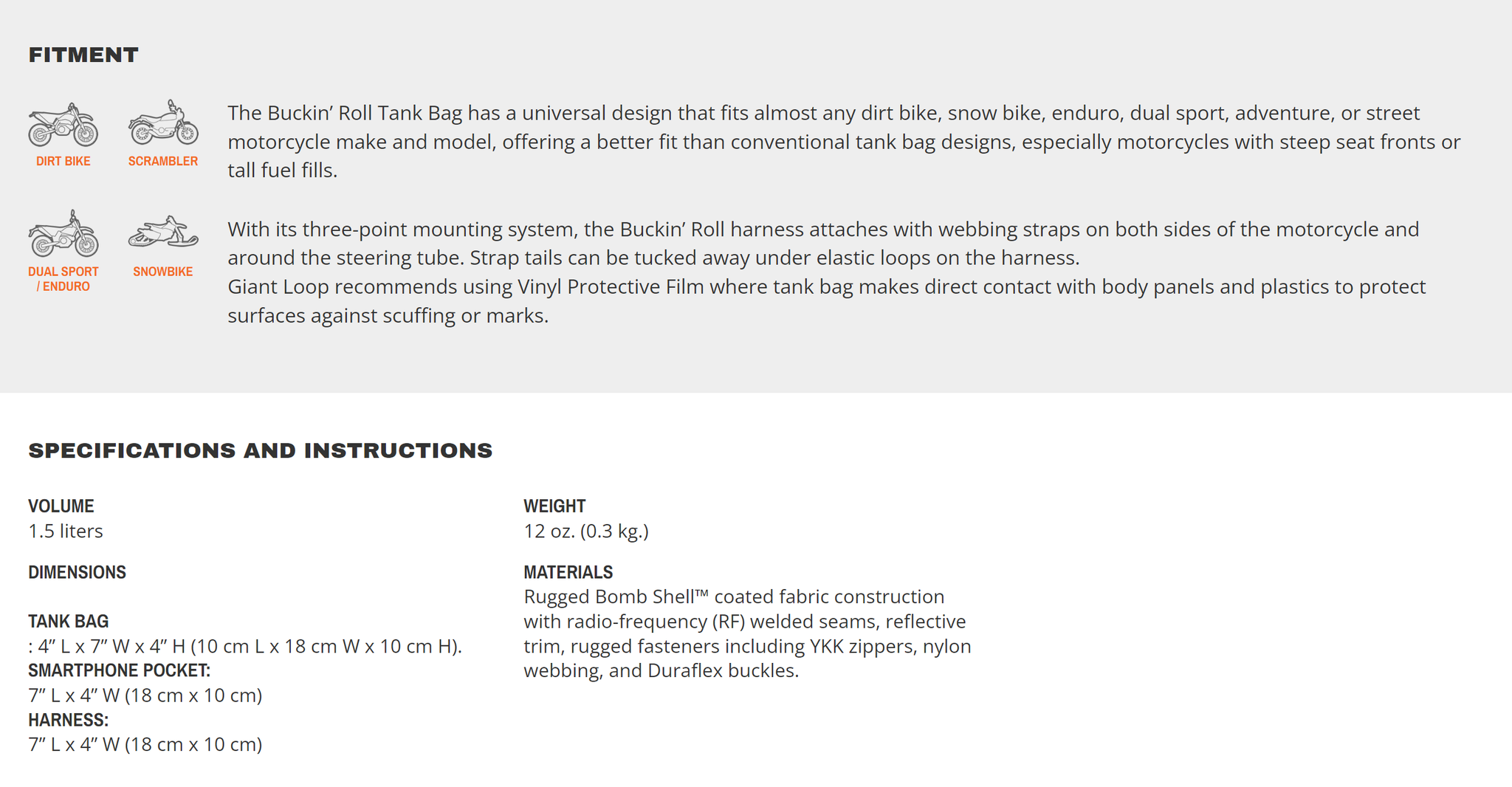 New Giant Loop Buckin’ Roll Motorcycle Tank Bag