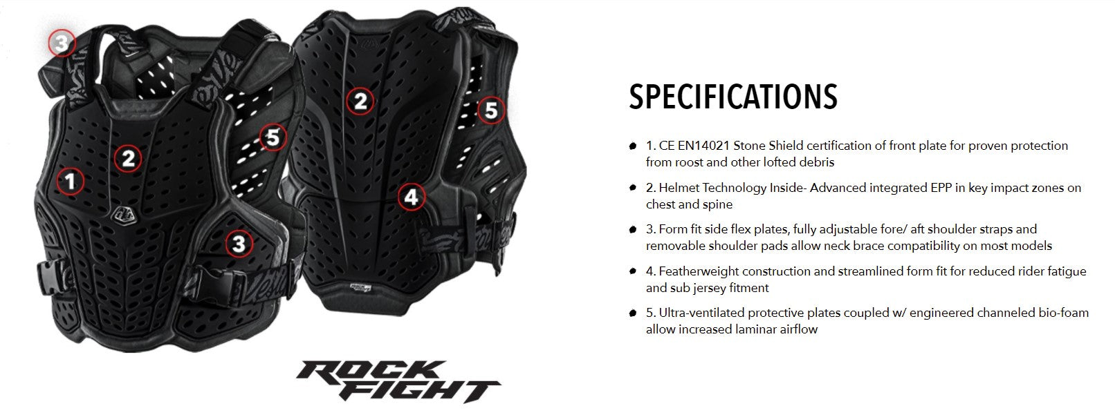TROY LEE DESIGNS ROCKFIGHT CHEST PROTECTOR, YOUTH SIZE, BLACK, FRONT AND BACK